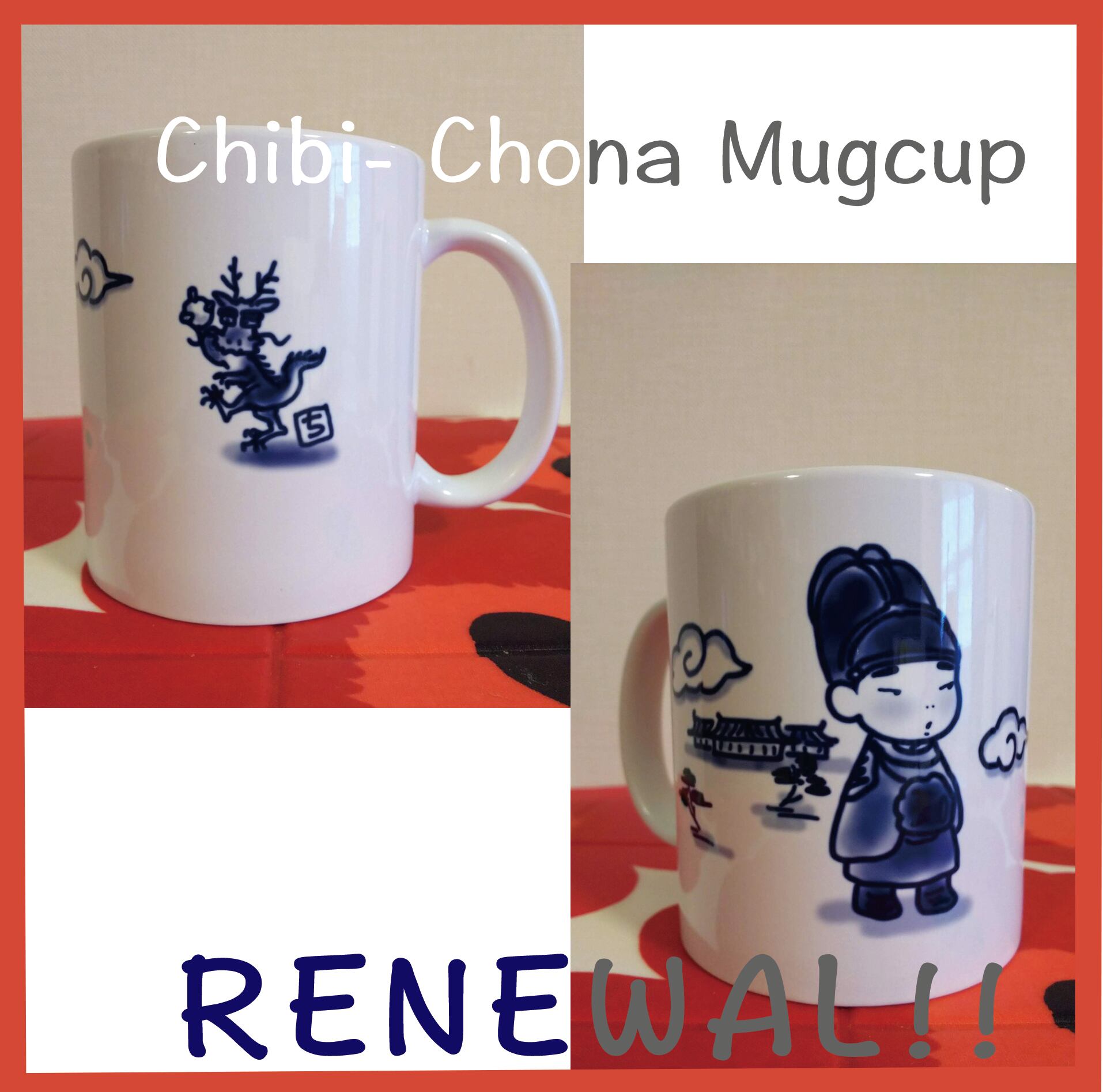 宮庭で遊ぶちびちょなとドラゴンの絵柄がかわいいマカップです。